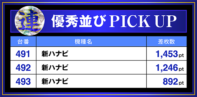 491番台から493番台までにプラスが続き、2台が+1,000pt以上を記録!!