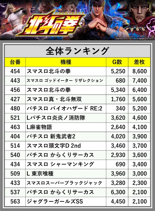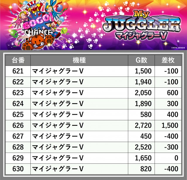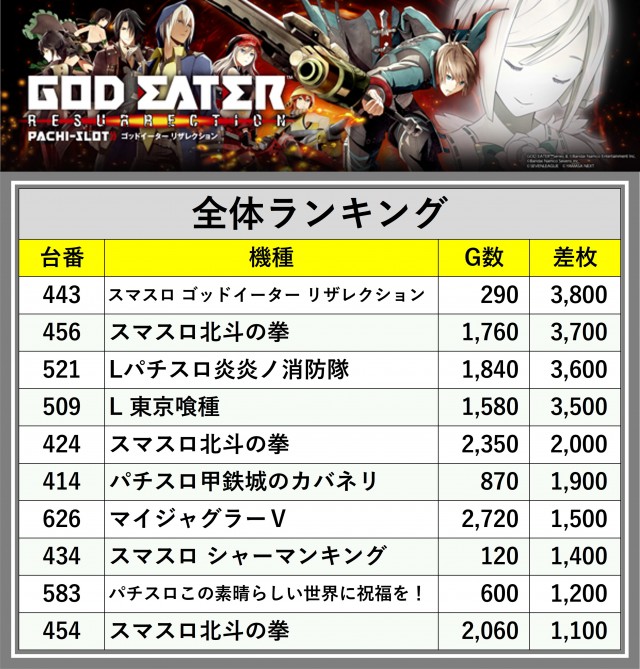 厳選された取材対象機種をはじめ、その他スロット全体から好記録が飛び出した!プレイヤーが楽しんだ1日を下記データにて振り返ってみて欲しい。
