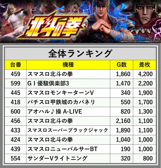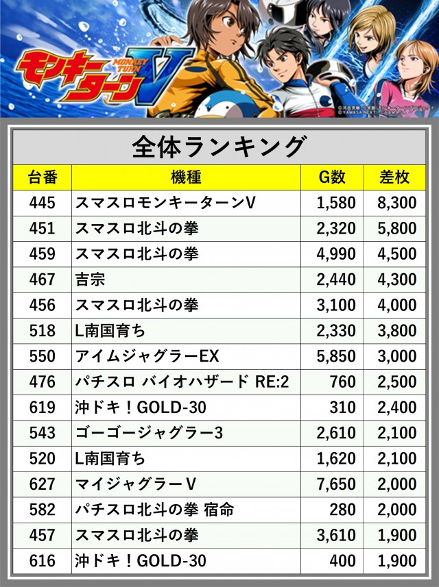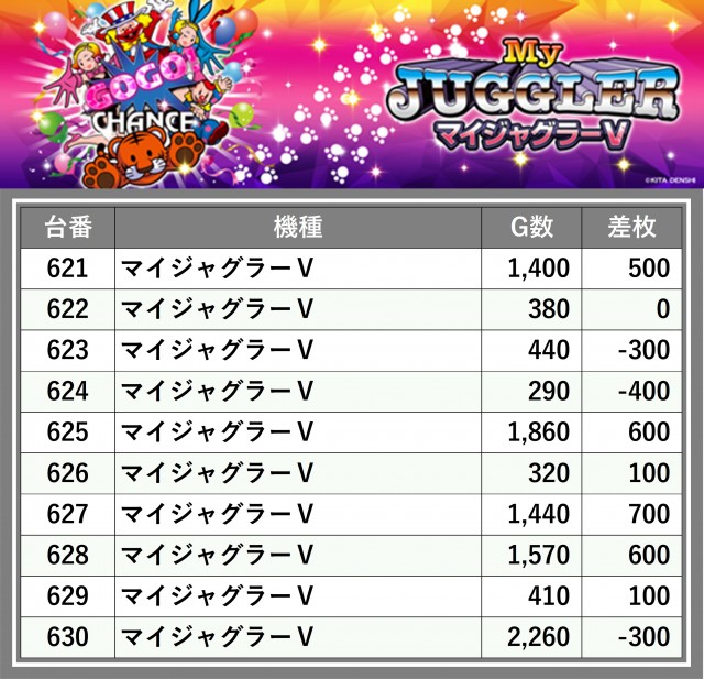厳選された取材対象機種をはじめ、その他スロット全体から好記録が飛び出した!プレイヤーが楽しんだ1日を下記データにて振り返ってみて欲しい。