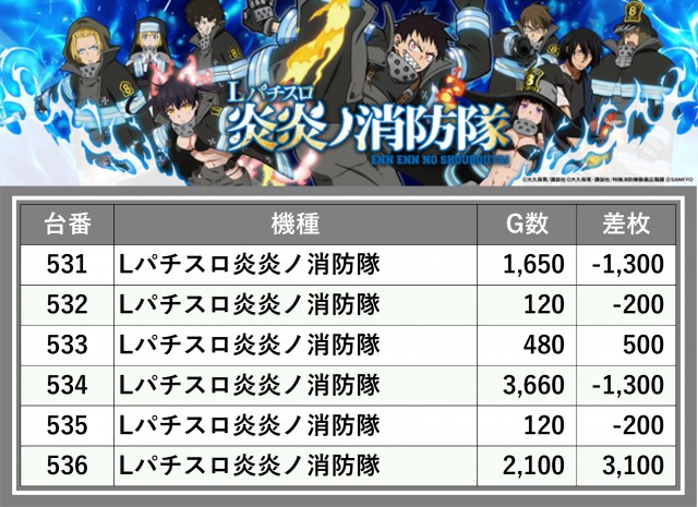 ※台番順に掲載しています