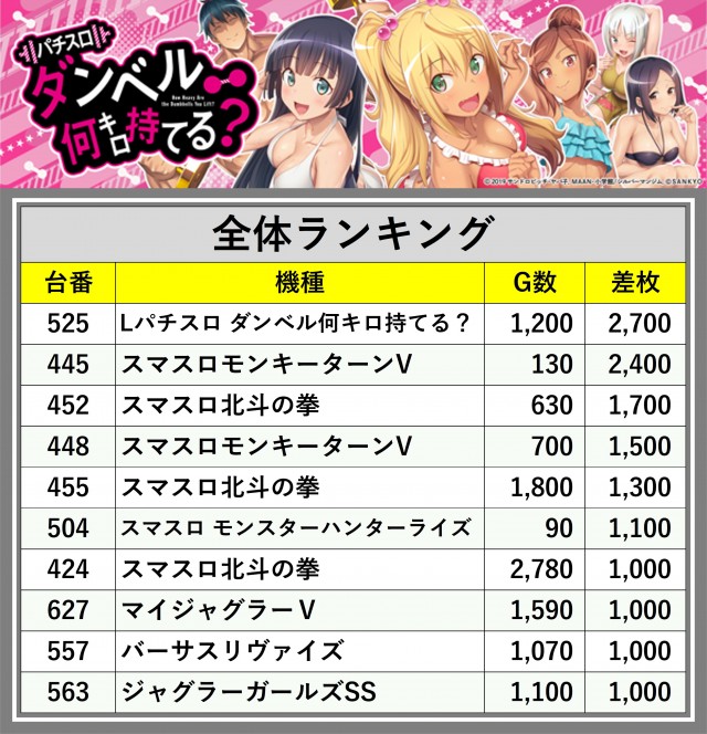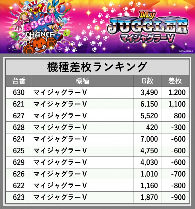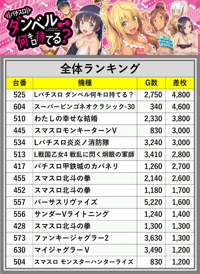 厳選された取材対象機種をはじめ、その他スロット全体から好記録が飛び出した!プレイヤーが楽しんだ1日を下記データにて振り返ってみて欲しい。