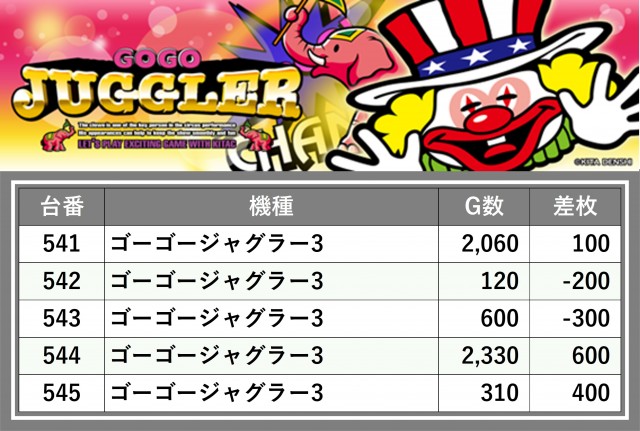 厳選された取材対象機種をはじめ、その他スロット全体から好記録が飛び出した!プレイヤーが楽しんだ1日を下記データにて振り返ってみて欲しい。