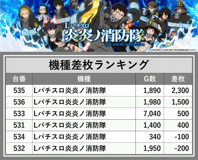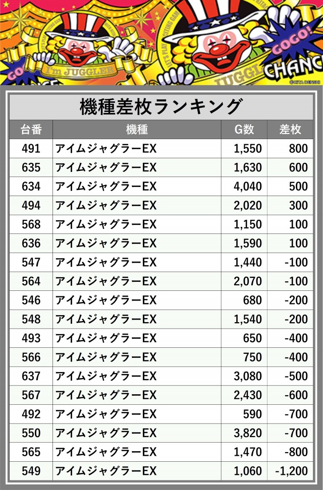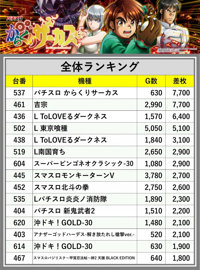 ※差枚数順に掲載しています