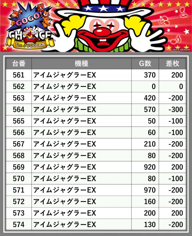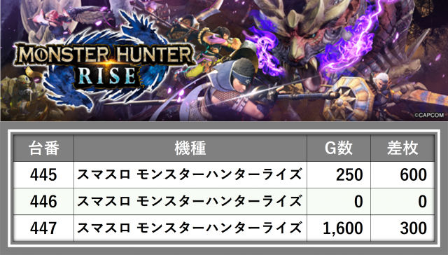 厳選された取材対象機種をはじめ、その他スロット全体から好記録が飛び出した!プレイヤーが楽しんだ1日を下記データにて振り返ってみて欲しい。
