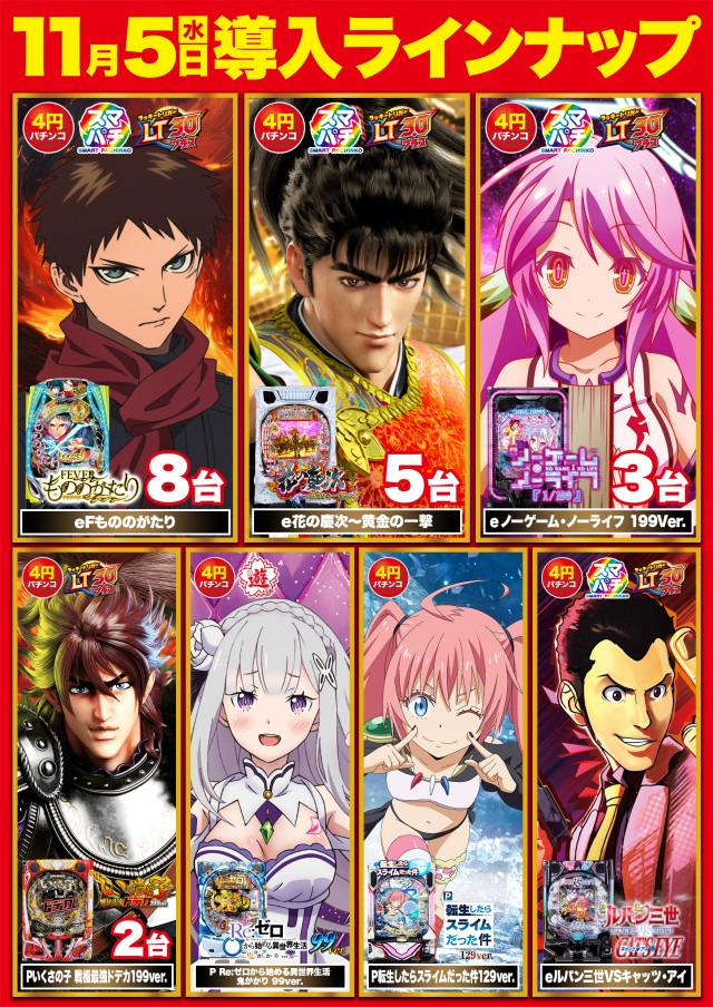 本日 5月9日 (木)新台入替! 午前10時オープン!
