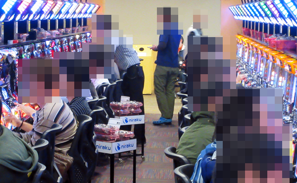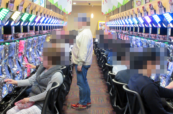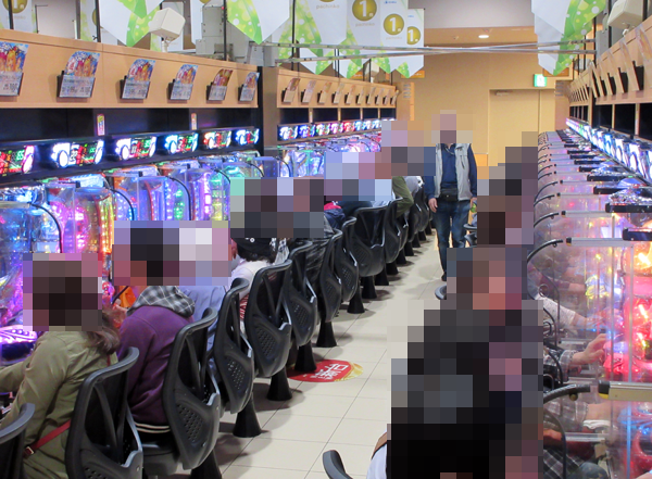 ホール内の様子をみてみると、パチンコ・パチスロコーナーともにたくさんのプレイヤーが集まり、大きくにぎわっていた。