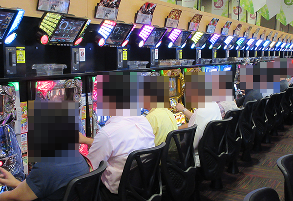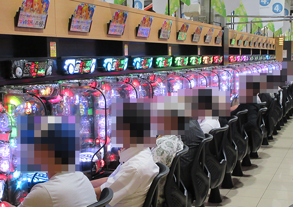 15時半をまわった頃、4円パチンコでは海物語シリーズが人気。