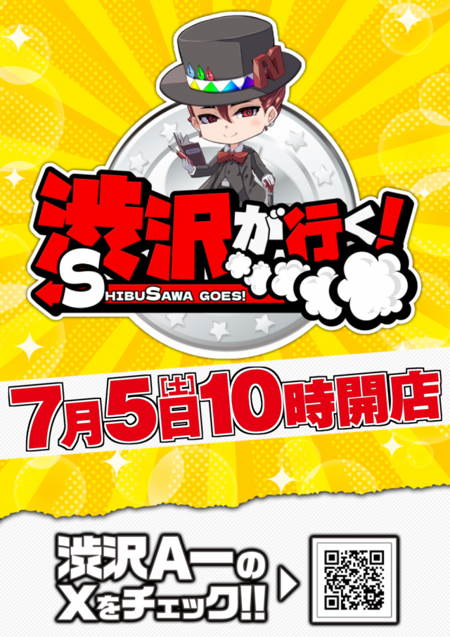 ★遊ぶぞ!週末★7/5(土)朝10時開店!渋沢A一さん来店!
