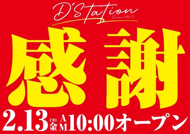 2月13日(金)埼玉D’ステーション全店10時一斉OPEN!