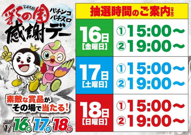 1月18日[日]彩の国ファン感謝デー!