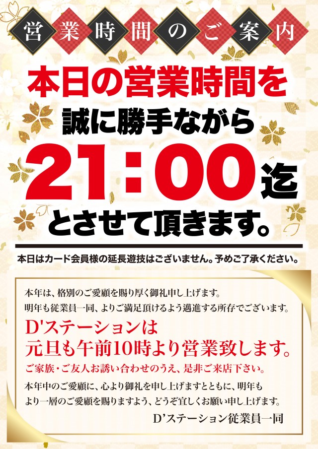 12月27日(土)埼玉D’ステーション全店10時一斉OPEN