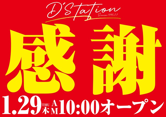 1月29日(木)埼玉D’ステーション全店10時一斉OPEN!