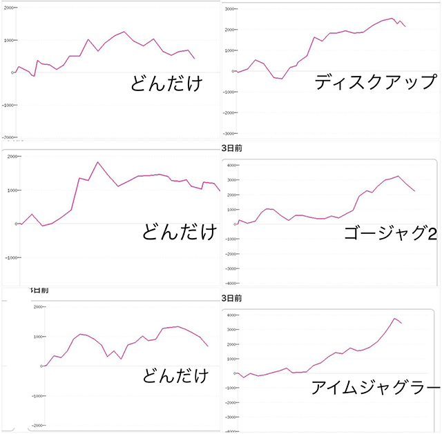 ほかにも、「マイジャグラーⅣ」や「アイムジャグラーEX」などのジャグラーシリーズなどで活気のあるシーンを確認していますよっ♪
