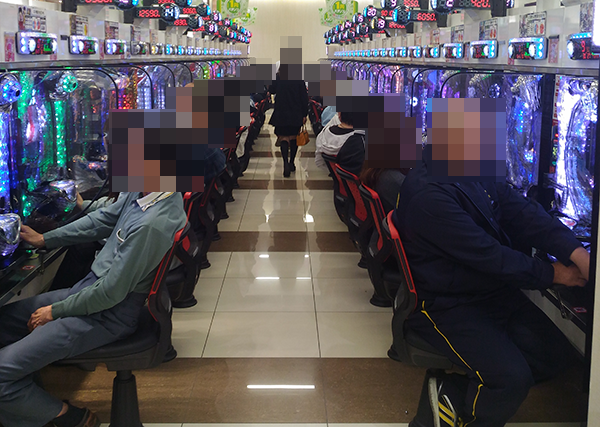 とくに1円パチンコの海物語シリーズにはプレイヤーの姿が多く、楽しそうな笑顔も印象的であった。