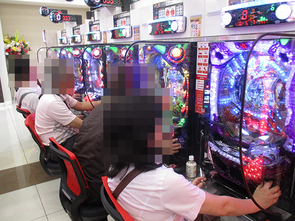 朝イチはパチスロへの注目度が高く、「パチスロ ゴッドイーター」や「ミリオンゴッド-神々の凱旋-」、「SLOT魔法少女まどか☆マギカ」といった定番機種がとくに盛況。これまでのREAL取材でもAT機に注目をしているプレイヤーが多かったが、今回もプレイヤーの動向は変わらないように思えた。