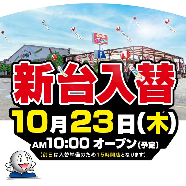 🌈10月23日(木)🌈新台入替🌈明日は15時開店となります。