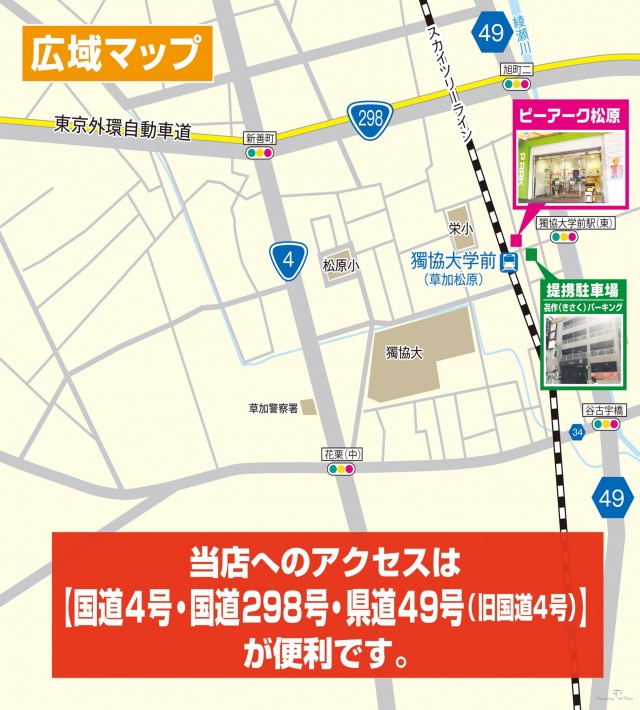 東武スカイツリーライン獨協大学前駅東口徒歩0分 |