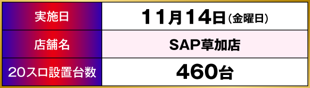 11月14日(金)、DMMぱちタウン取材班は「TAG MATCH(タッグマッチ)」と題して、「SAP草加店」と「パラッツォ三郷中央店」の2店舗の同時取材を敢行した。取材レポートでは両店の差枚ランキングと、華々しい結果の中から今回は独自に選定した「マイジャグラーⅤ」の記録に注目してほしい。