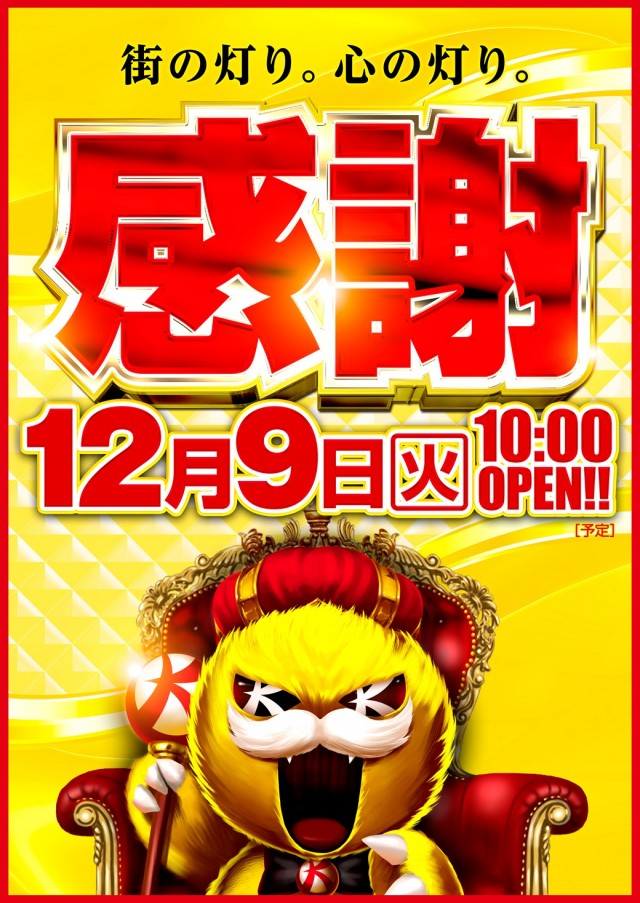 キコーナ統一コンセプト「感謝」◆新台入替◆暴凶星、アズールレーン2化物語導入!マイジャグラー20台設置済み