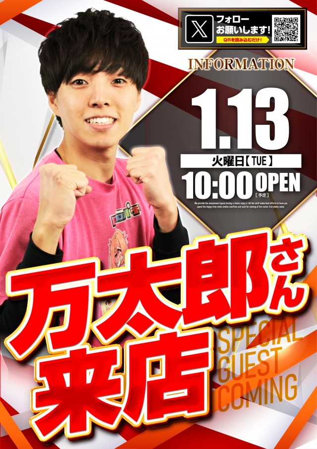 🌟感謝🌟1/13(火)10時開店❗万太郎さん来店