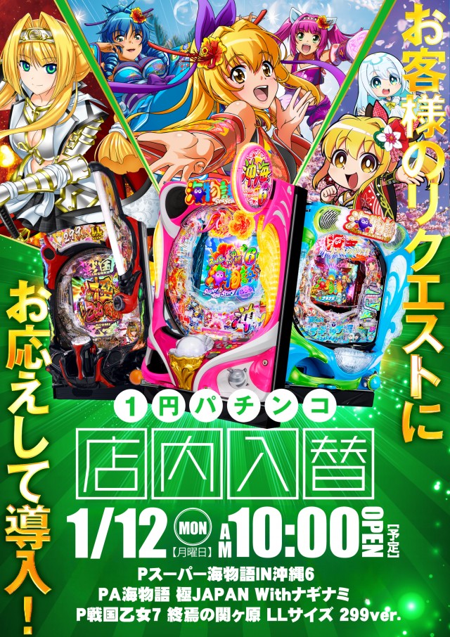 1/12(月) 【三共ATTENTION】 × 【店内入替】