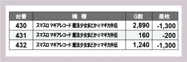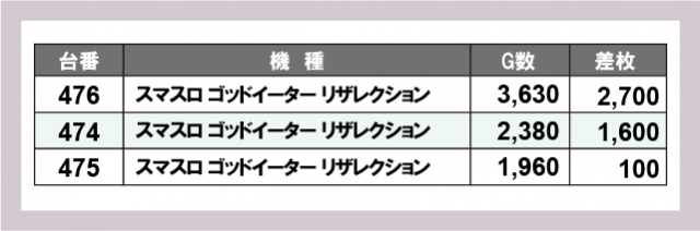 ※台番号順に掲載しています