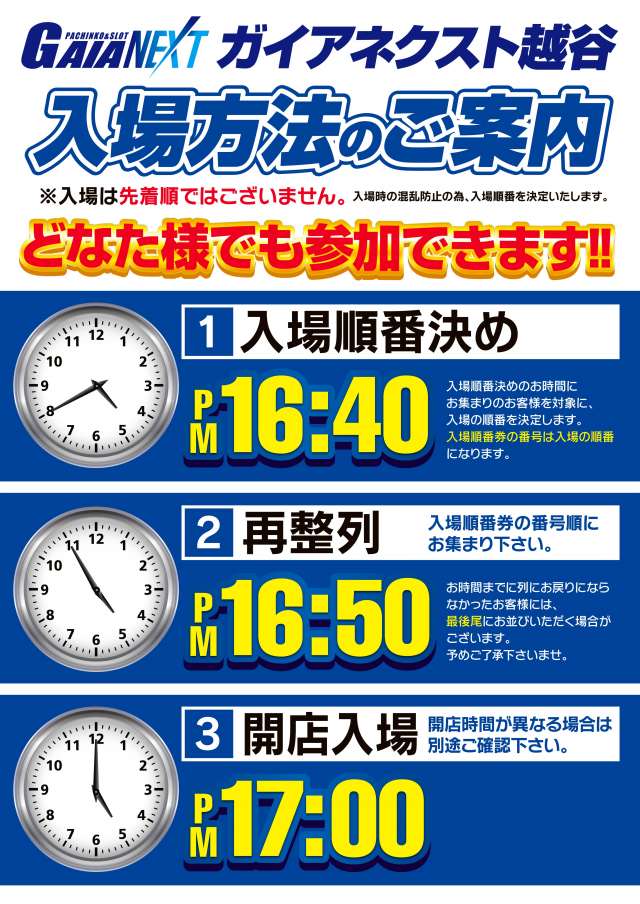 朝9時45分より 裏側の駐輪場で入場順番決めを行います。再整列は9時55分より行います。 |