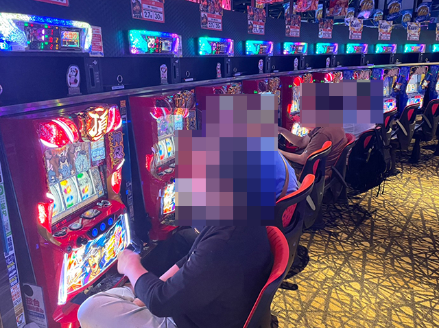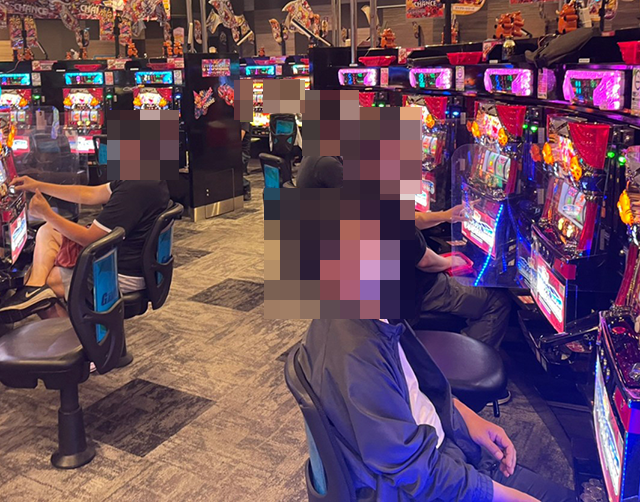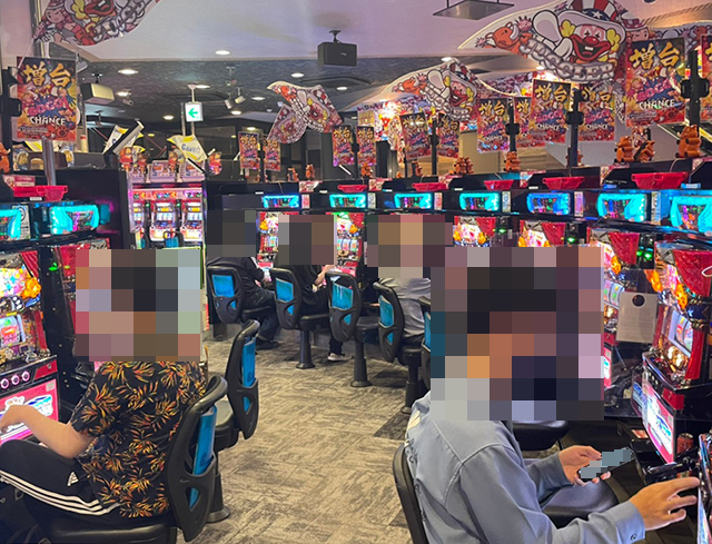 長く愛されているシリーズ機や新台など、さまざまな機種に楽しそうな光景が広がっているホールであった。