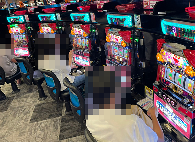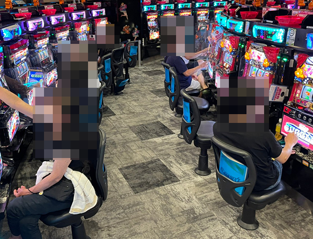 笑顔で遊技をおこなうプレイヤーが目立ち、シマ内は華やかなムード。