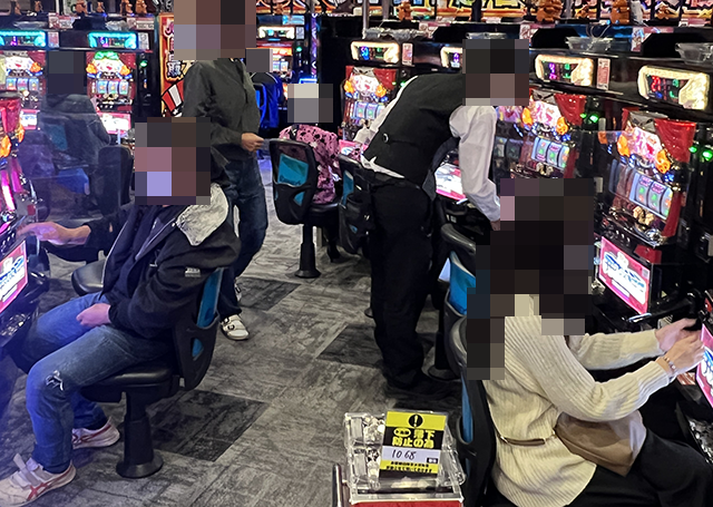 ジャグラーシリーズ以外の機種も楽しまれており、さまざまな場所からにぎわいが感じられるホールであった。