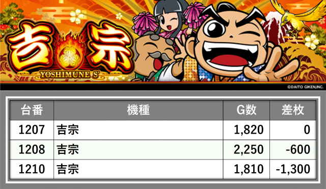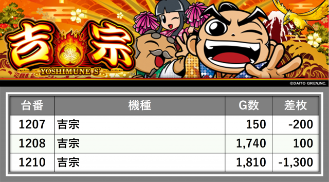 厳選された取材対象機種をはじめ、その他スロット全体から好記録が飛び出した!プレイヤーが楽しんだ1日を下記データにて振り返ってみて欲しい。