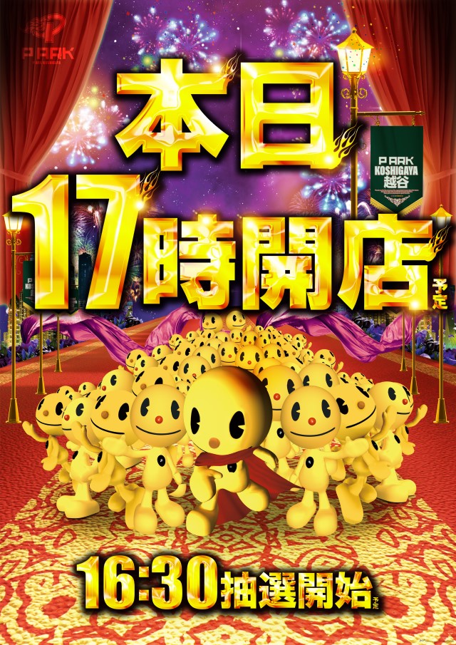 本日ピーアーク越谷 17時 開店