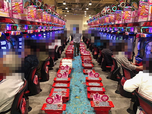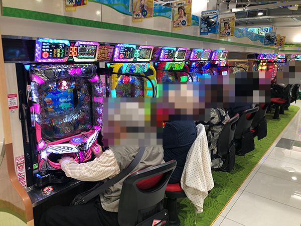 4円パチンコでは前日に引き続き、「CR大海物語4」が大盛況。プレイヤーの明るい笑顔からは、満足度の高さもうかがえた。