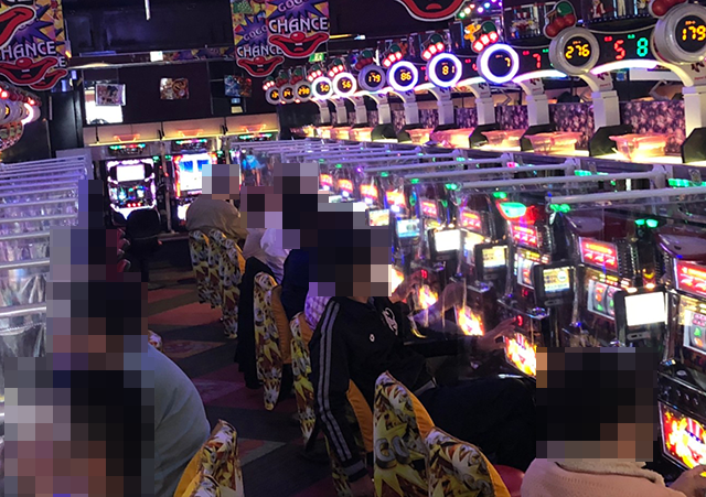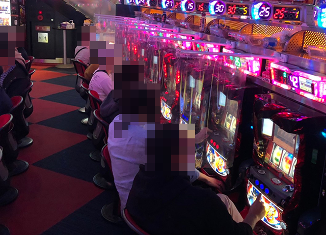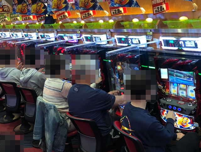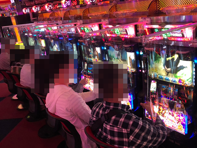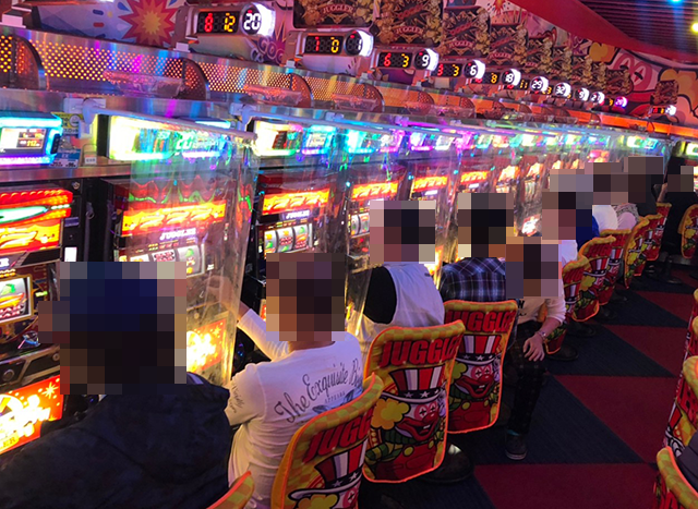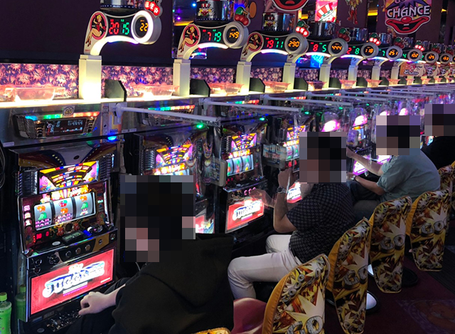 ジャグラーシリーズや「SLOTバジリスク~甲賀忍法帖~絆2」なども人気があり、あちこちから活気が感じられる状況。