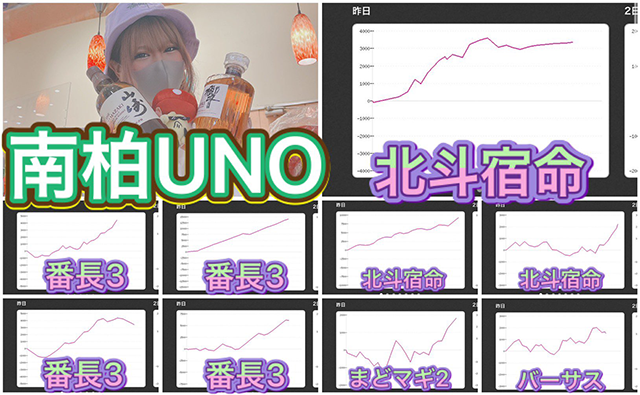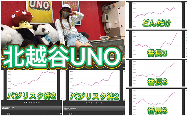 今回お邪魔したホールは、「南柏UNO」と「三ノ輪UNO」、「北越谷UNO」と「せんげん台UNO」の4店舗でーす(*^ω^*)/