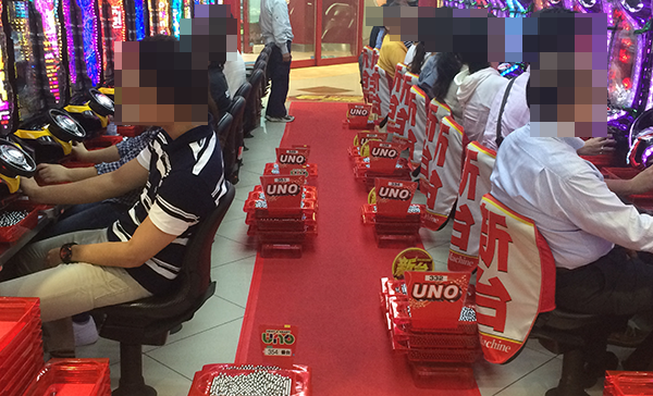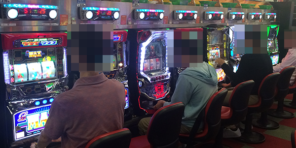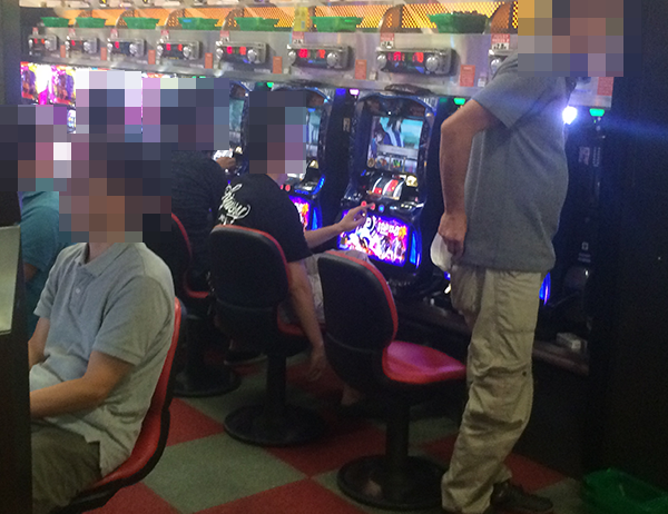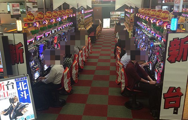 夕方頃のパチスロをみると、新台の「パチスロ北斗の拳 強敵」が満席と、圧倒的な人気を誇っていた。