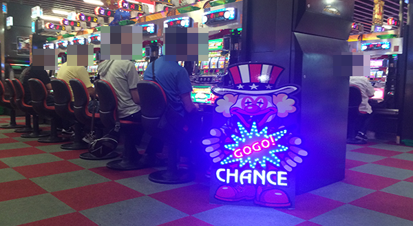 4円パチンコでは新台の「CRヱヴァンゲリヲン10」や「CRルパン三世 I’m a Super hero」といったMAXタイプがほぼ満席と盛り上がりが大きい。