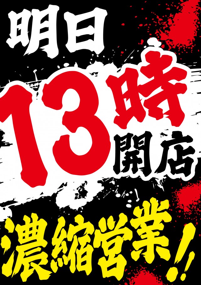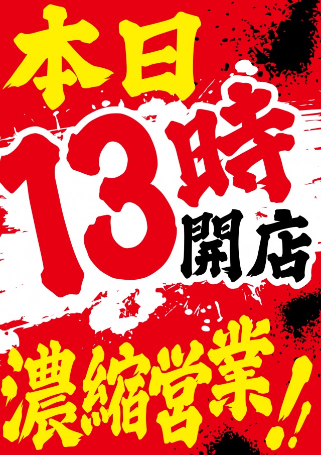 本日13時開店濃縮営業٩( ’’ω’’ )و