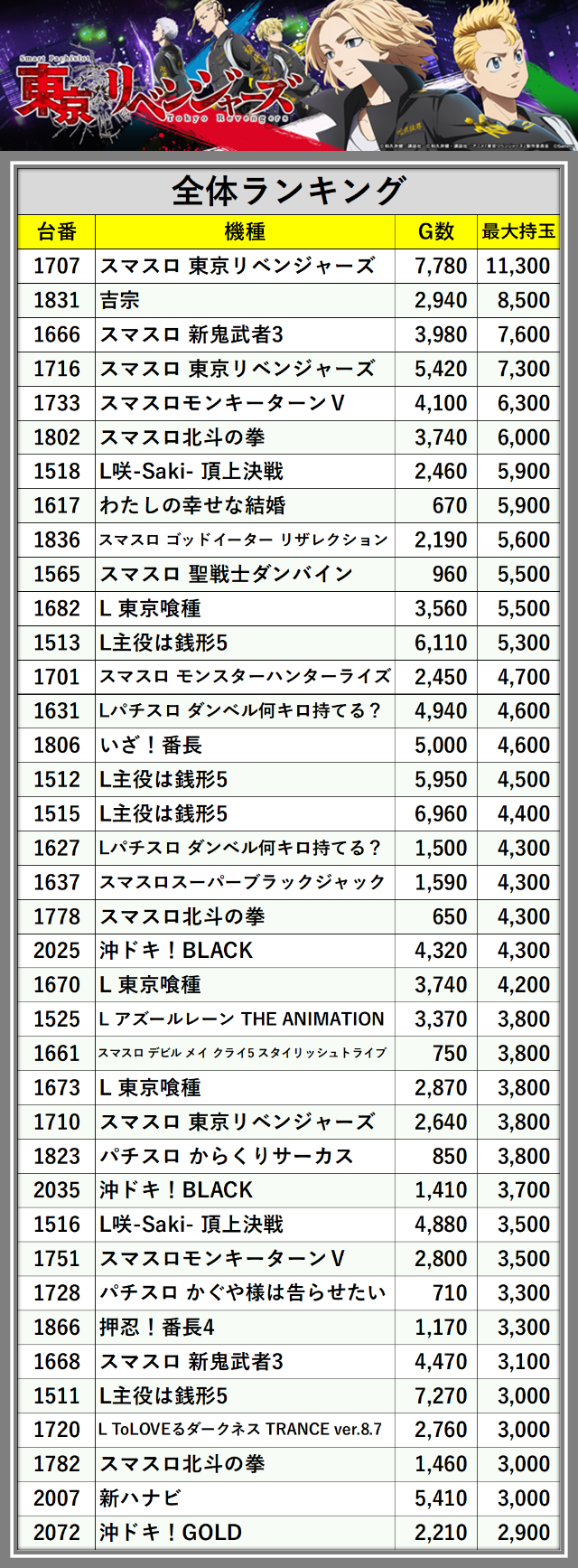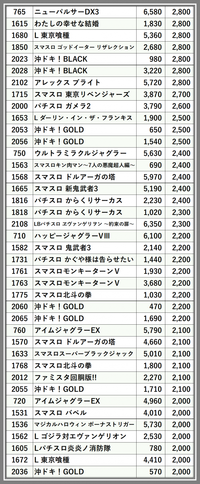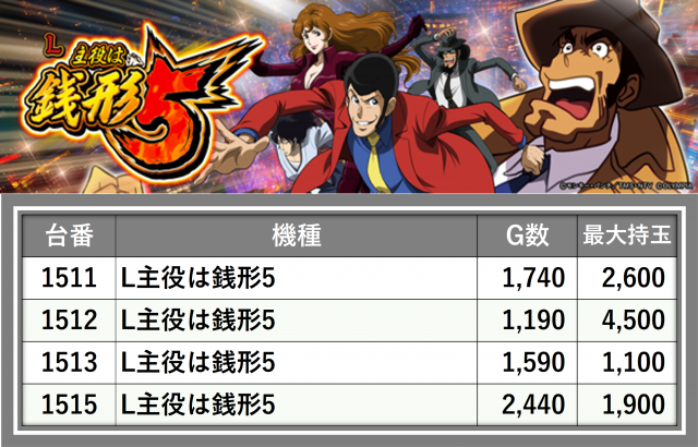 厳選された取材対象機種をはじめ、その他スロット全体から好記録が飛び出した!プレイヤーが楽しんだ1日を下記データにて振り返ってみて欲しい。