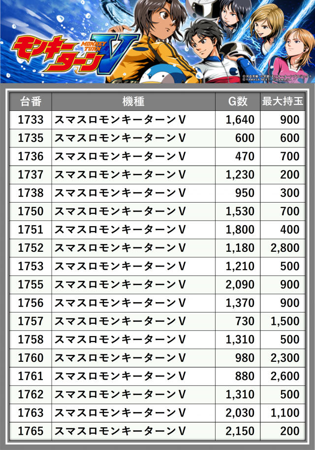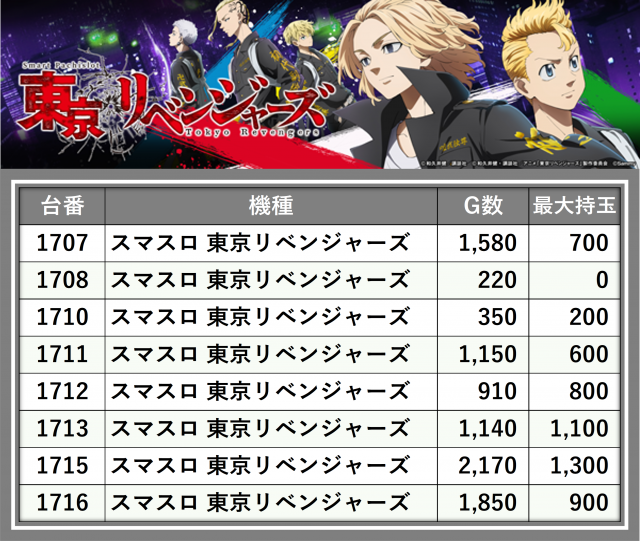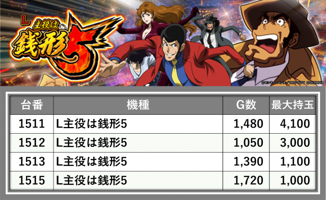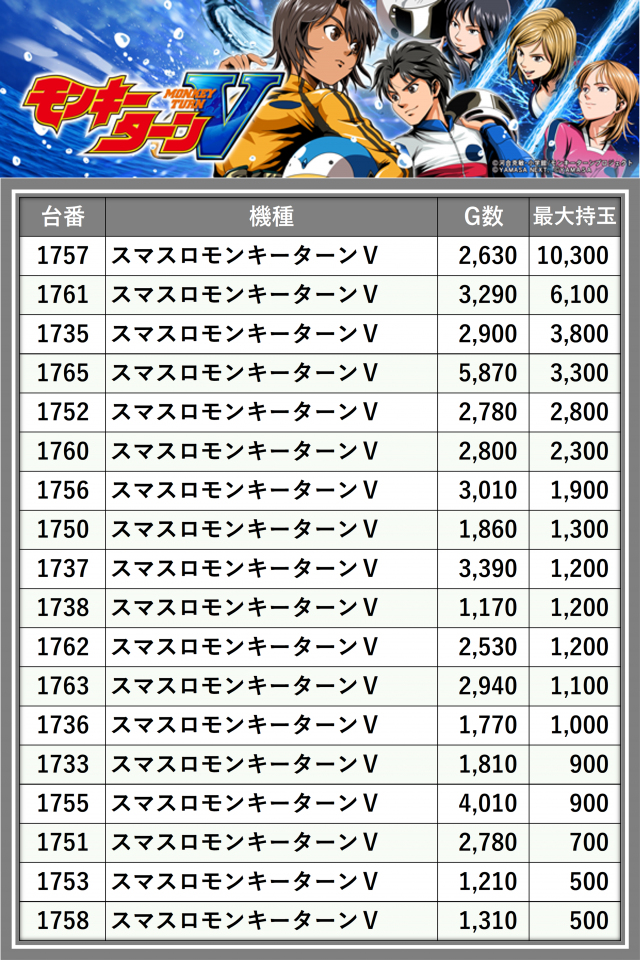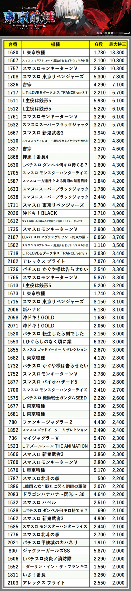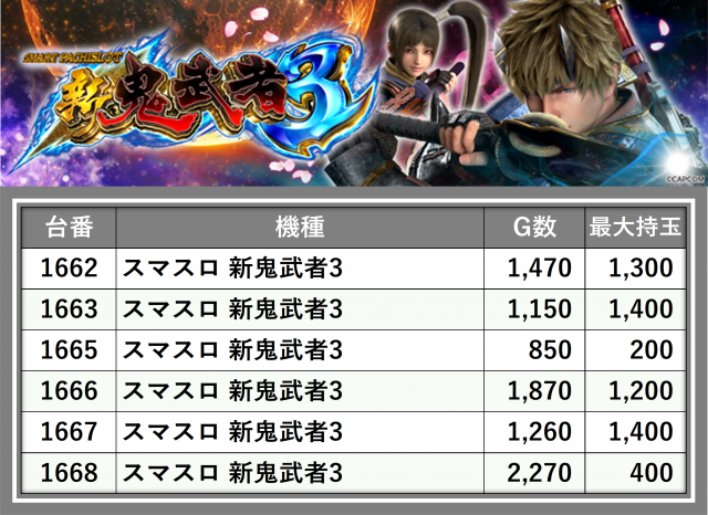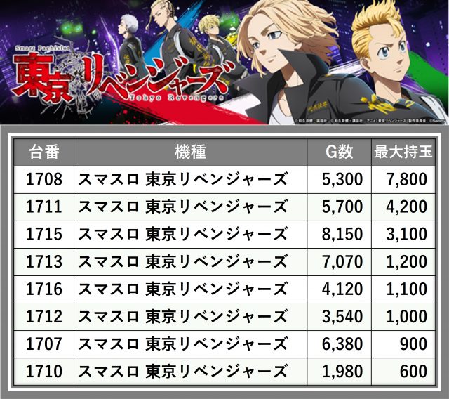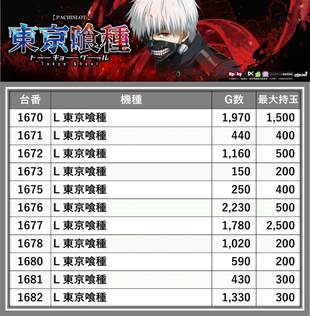 ※台番順に掲載しています