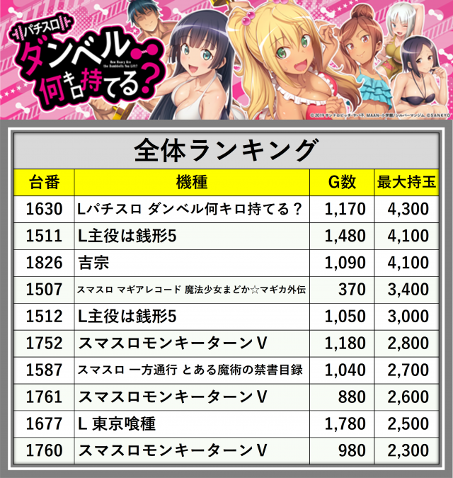 厳選された取材対象機種をはじめ、その他スロット全体から好記録が飛び出した!プレイヤーが楽しんだ1日を下記データにて振り返ってみて欲しい。