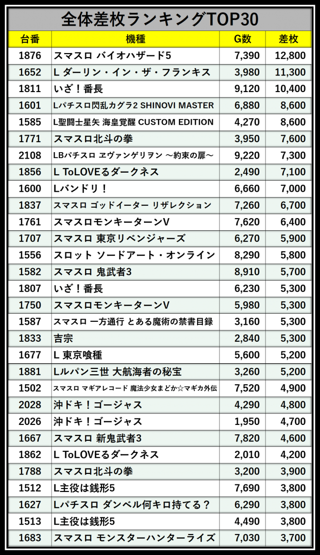 その結果の中から、ぱちタウンが注目すべきポイントを厳選してユーザーにお届け!プレイヤーが楽しんだ一日を下記データにて振り返ってみて欲しい。