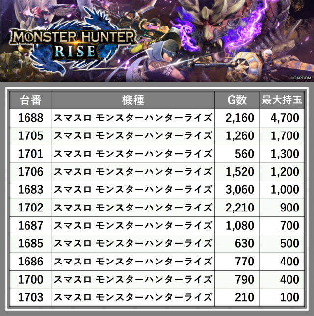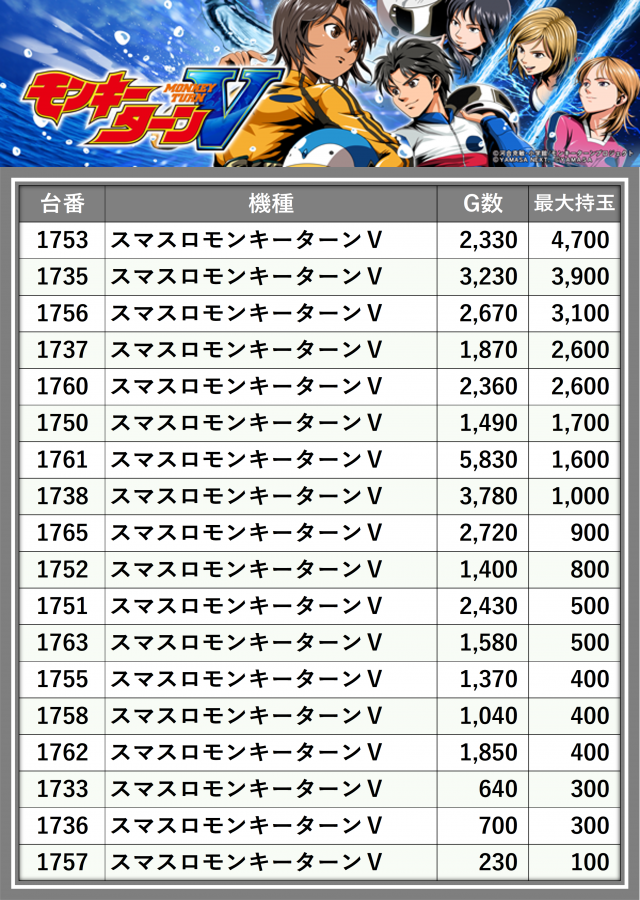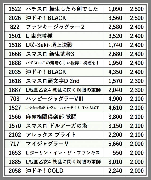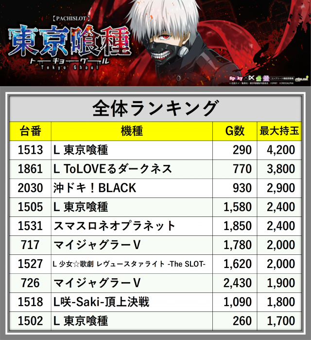 厳選された取材対象機種をはじめ、その他スロット全体から好記録が飛び出した!プレイヤーが楽しんだ1日を下記データにて振り返ってみて欲しい。