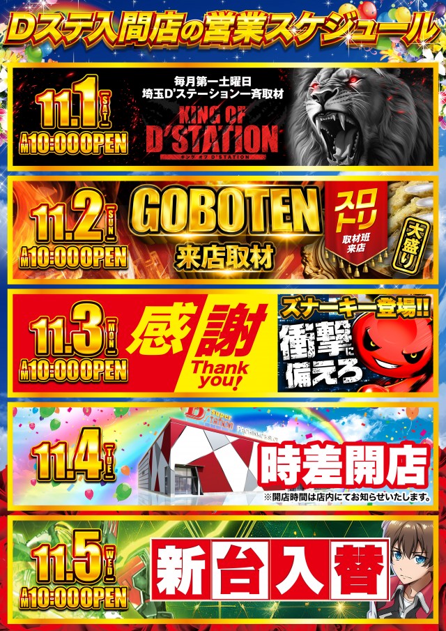 10月4日(土)、「KING OF D'STATION(キング オブ D'ステーション)」と題して、D'STATION全店を一斉取材した。D'STATION各店を7ブロックに分けてキング争奪戦を行う。DMMぱちタウンの独自基準に基づき、まさに…