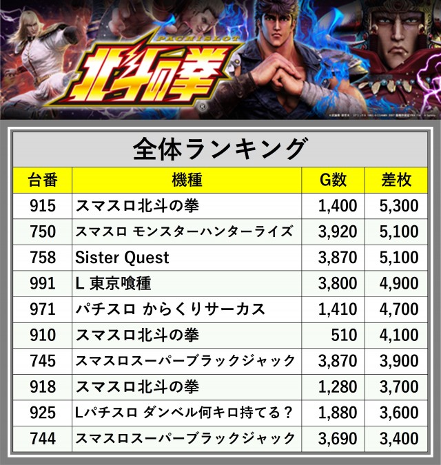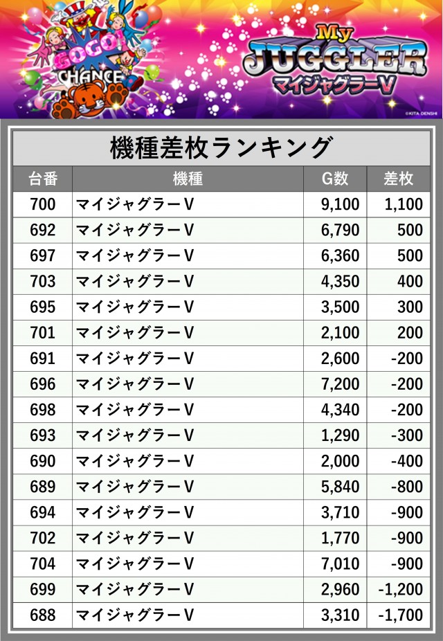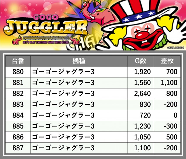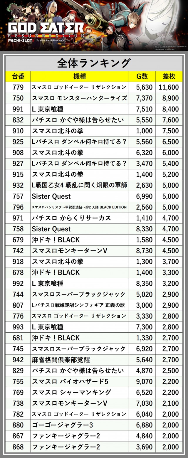 厳選された取材対象機種をはじめ、その他スロット全体から好記録が飛び出した!プレイヤーが楽しんだ1日を下記データにて振り返ってみて欲しい。