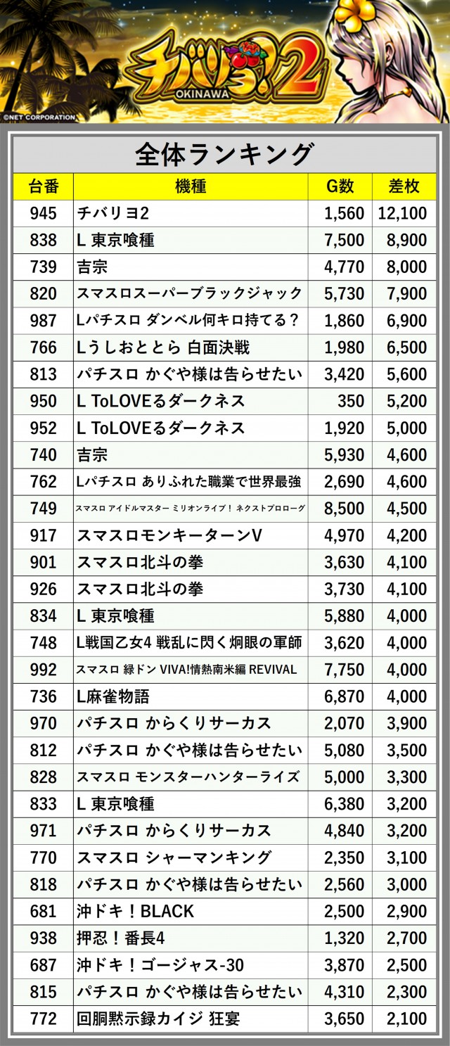 厳選された取材対象機種をはじめ、その他スロット全体から好記録が飛び出した!プレイヤーが楽しんだ1日を下記データにて振り返ってみて欲しい。
