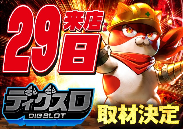 29日ディグスロ&スロイベさんぽ取材来店!入場抽選9:40!