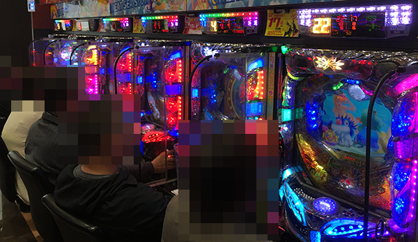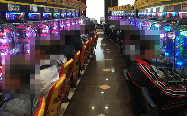 16時頃の4円パチンコをみると、「ぱちんこCR真・北斗無双」や「CRフィーバー機動戦士ガンダムLAST SHOOTING」などがとくににぎわっており、満面の笑みを浮かべているプレイヤーも多数。