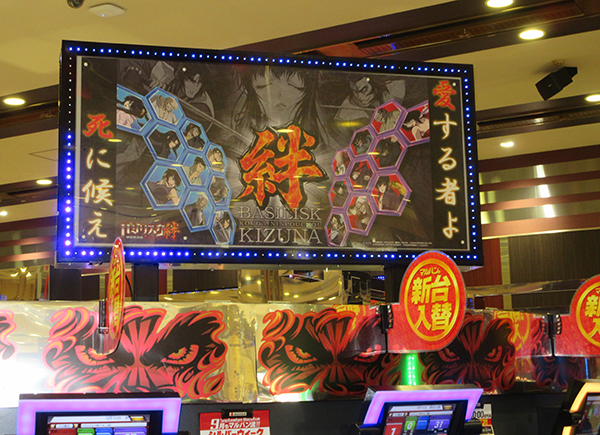「パチスロ北斗の拳 強敵」や「バジリスク~甲賀忍法帖~絆」などのシマ上にはキャラクターのパネルが飾られており、見ているだけでも楽しくなるような装飾品も魅力的に映った。