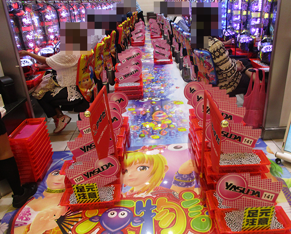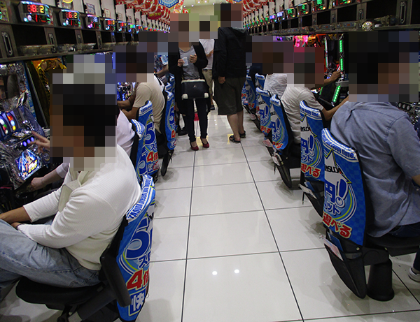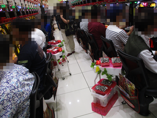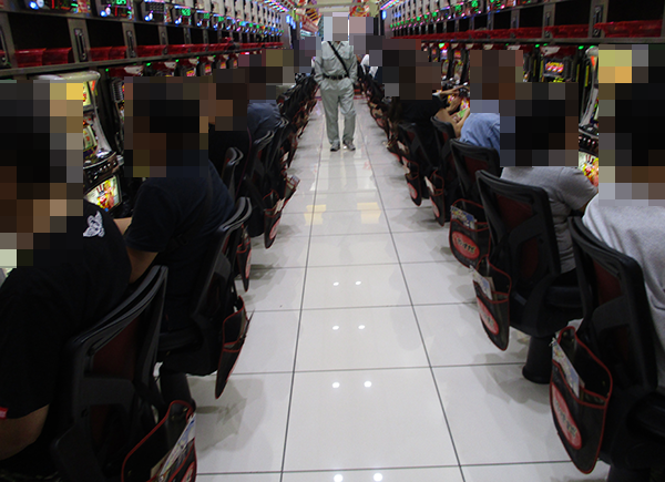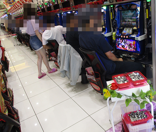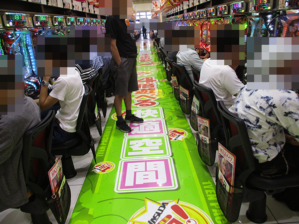 1円パチンコもほぼ満席といった状況。